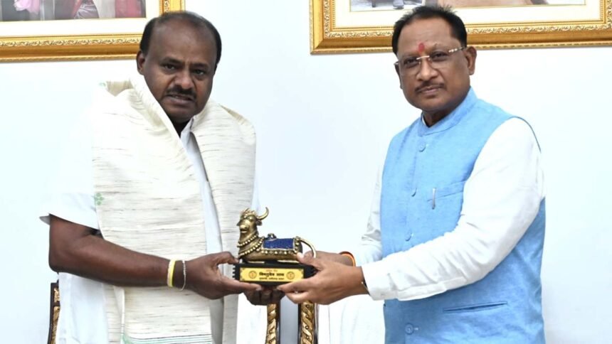 रायपुर। मुख्यमंत्री विष्णु देव साय से आज यहां उनके निवास में केंद्रीय इस्पात एवं भारी उद्योग मंत्री श्री एच.डी. कुमार स्वामी ने सौजन्य मुलाकात की। मुख्यमंत्री साय ने केंद्रीय मंत्री कुमारस्वामी का अपने निवास में आत्मीय स्वागत किया। मुख्यमंत्री ने कुमारस्वामी को शॉल एवं स्मृति चिन्ह भेंट किया।